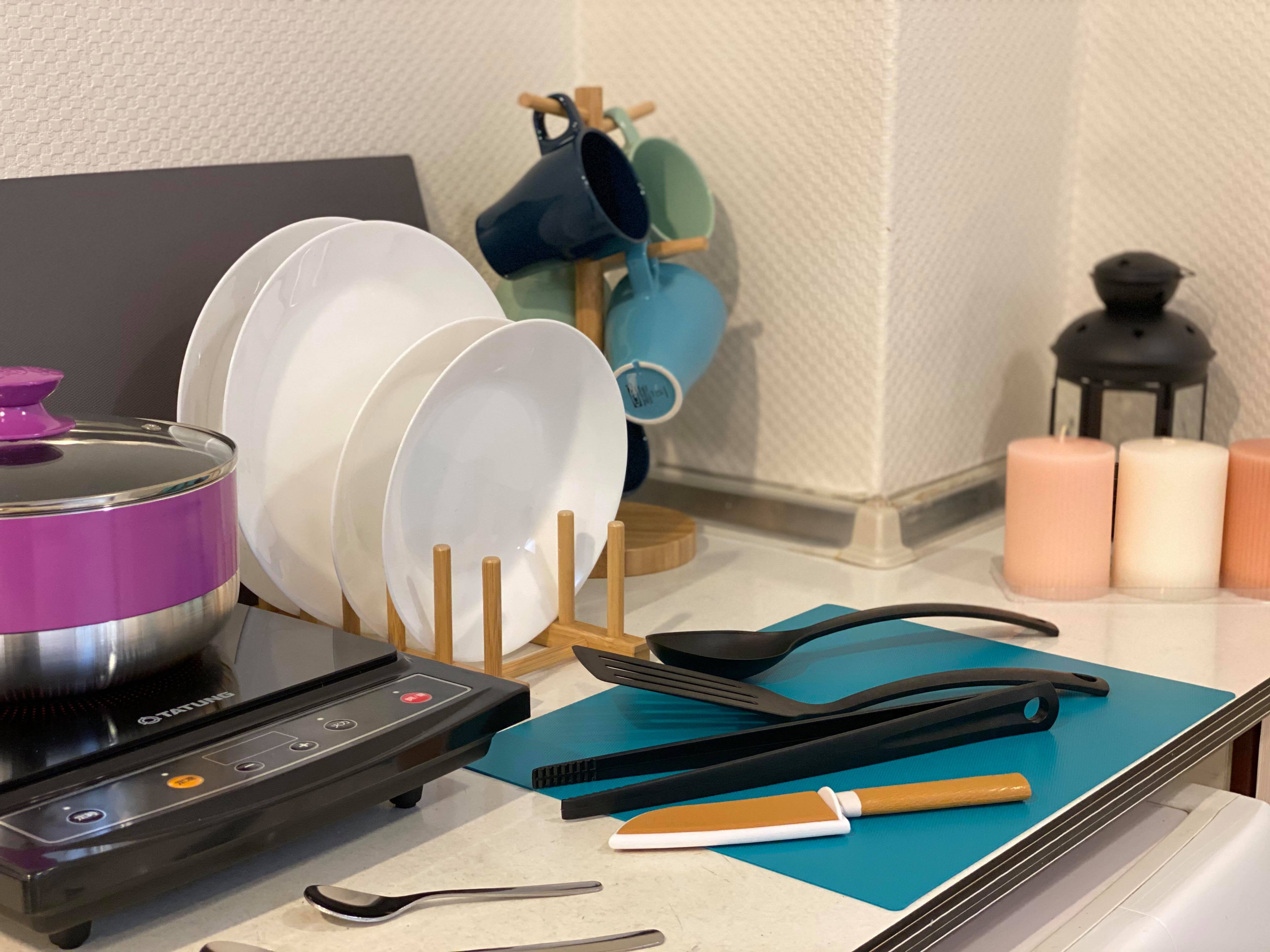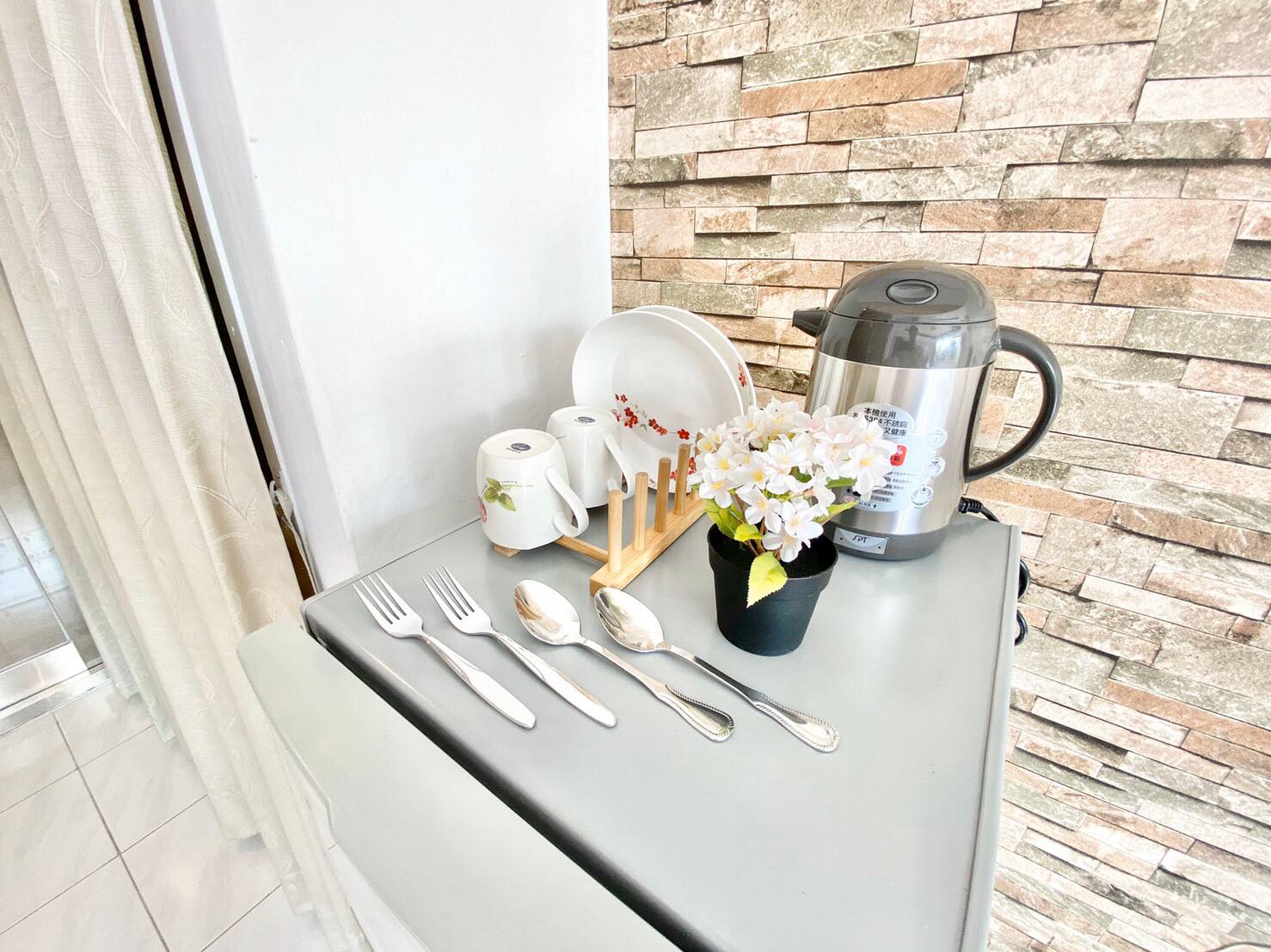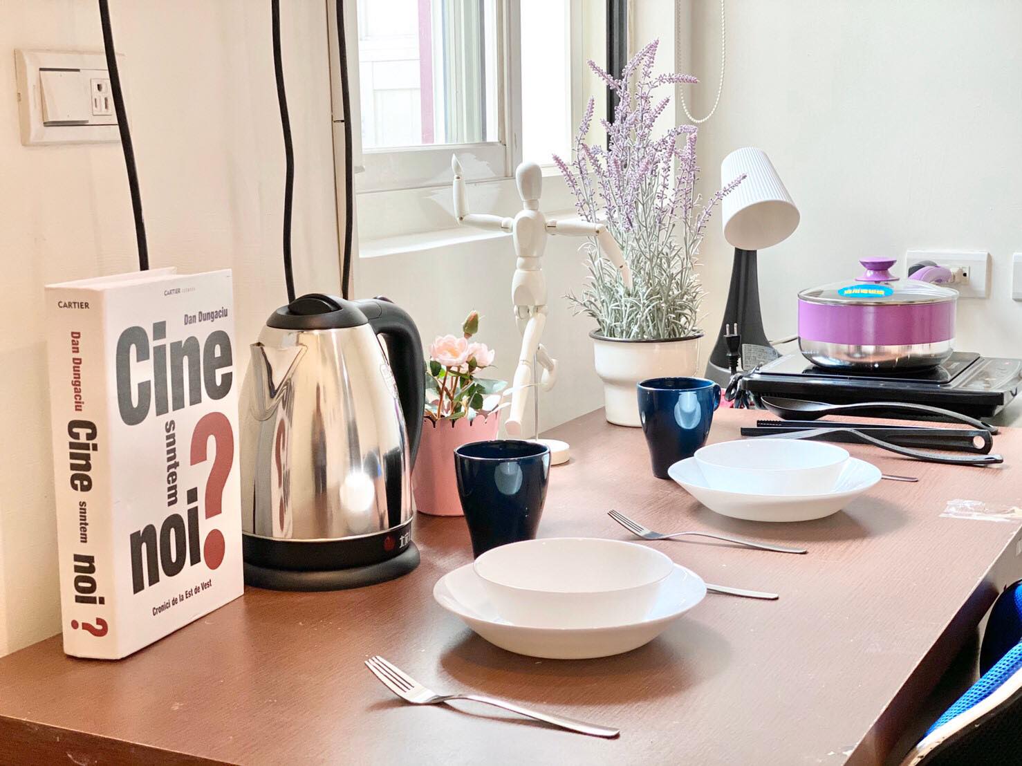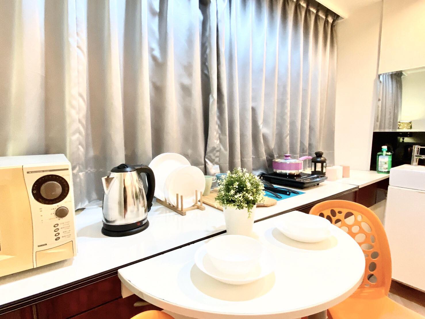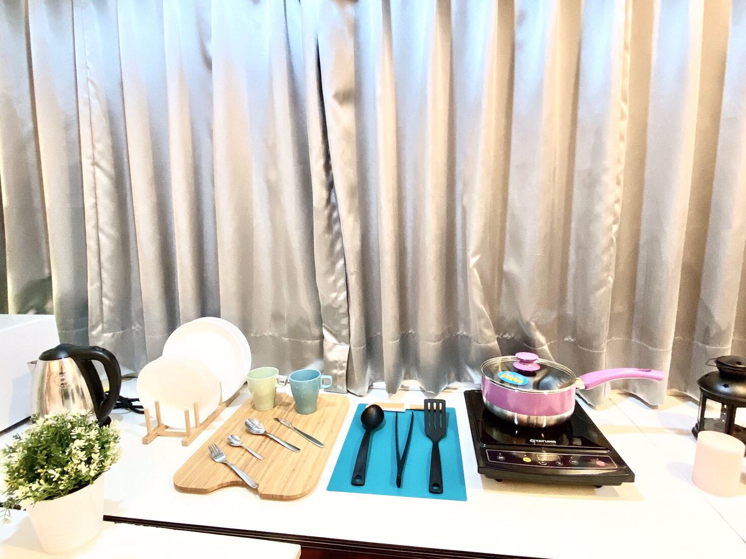 Amenities: Electric Kettle, Kitchen Utensils, Dining Table & Chairs