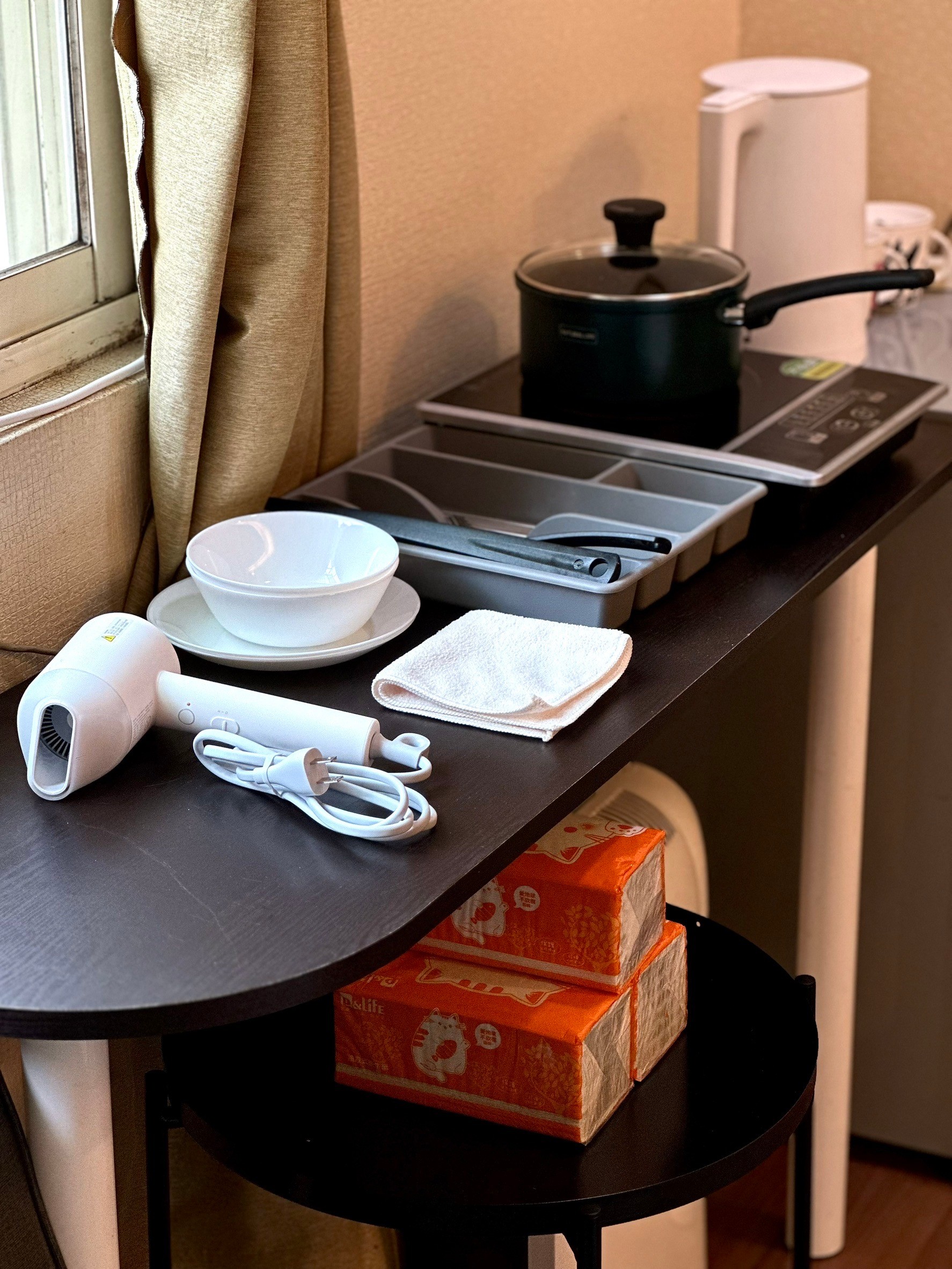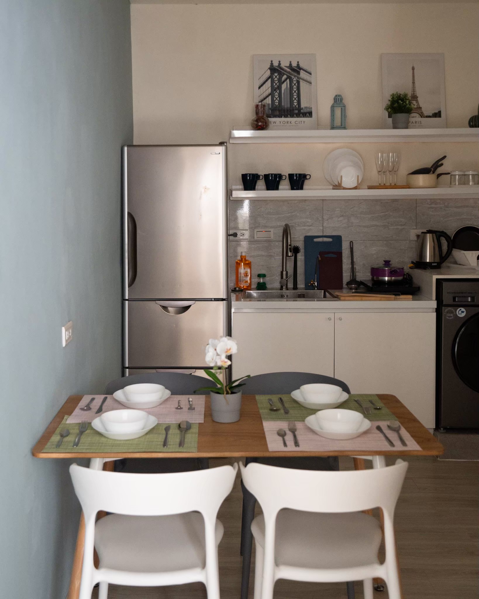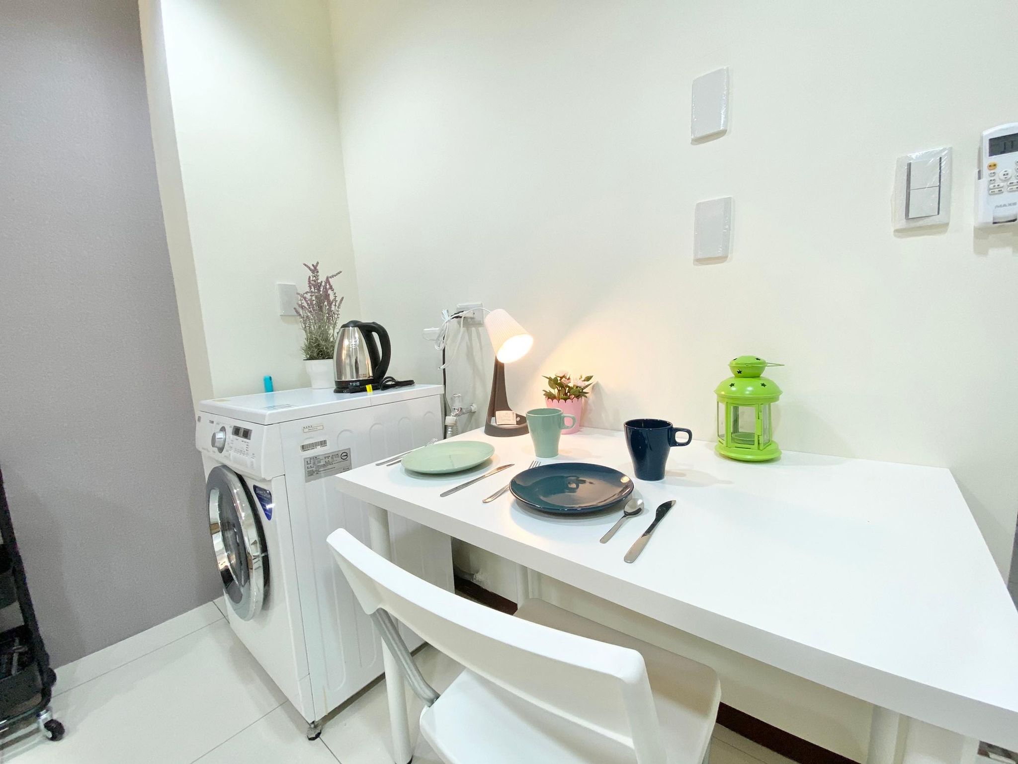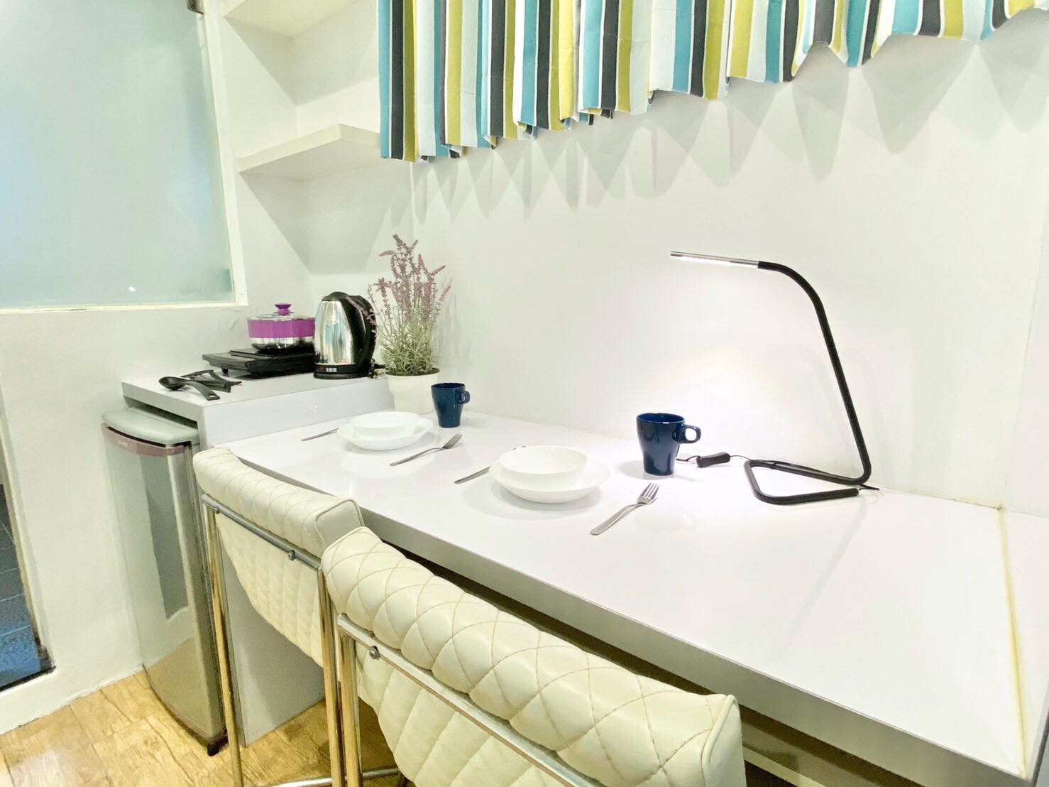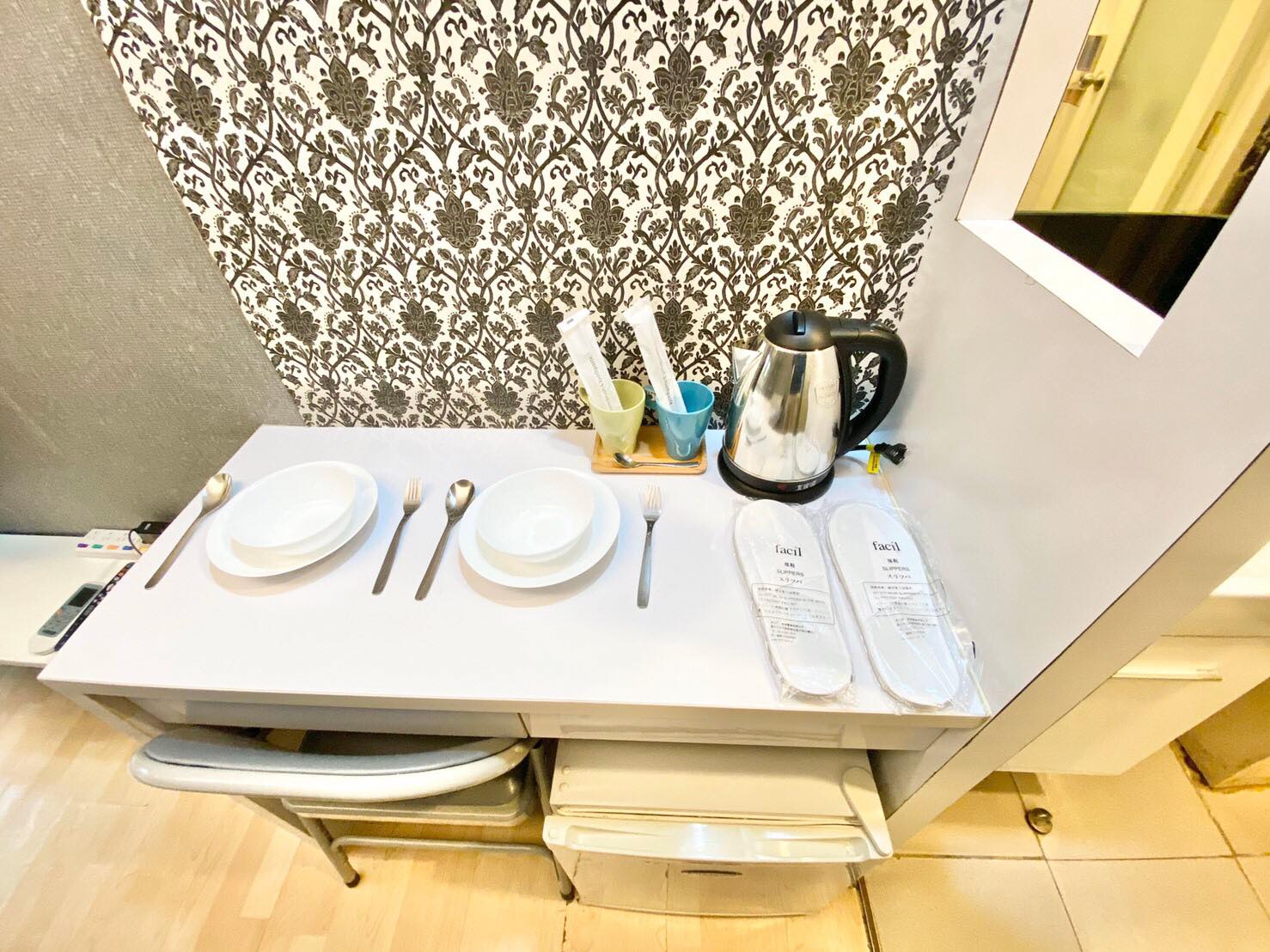 Amenities: Electric Kettle, Kitchen Utensils, Dining Table & Chairs